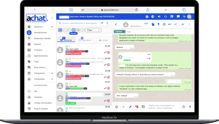 Centralize seus canais, organize clientes e agilize processos com o achat.